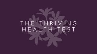 The Thriving Health Test has been developed to quickly identify the areas of your life and health that need the most attention and that will generate the greatest results for you.